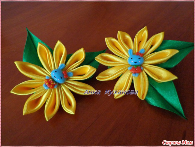 Вот мои первые резиночки для старшей доченьки. Зайчиков сняла с заколочек)))