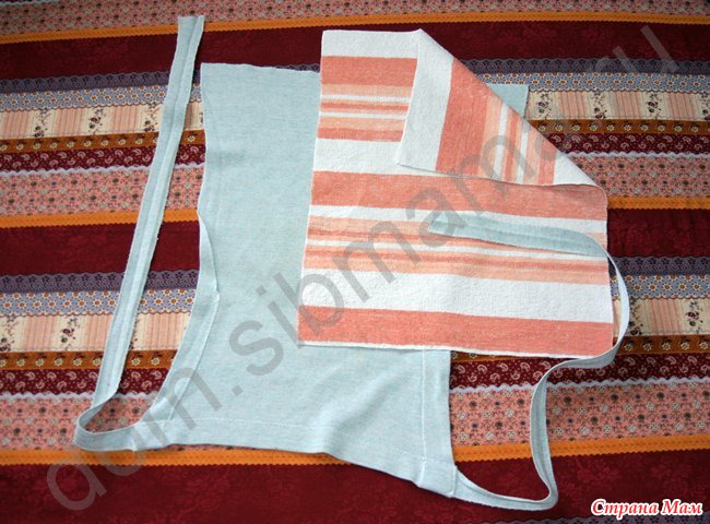 Прямоугольник из трикотажного полотна с двумя завязками и впитывающая часть из старого махрового полотенца. Что может быть проще, подумала я? Такой подгузник мягкий и удобный. Из него ничего не вываливается, т.к. он хорошо облегает ножки. Его легко шить, стирать и сушить.