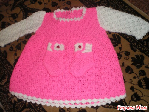 Платье взято из журнала Сабрина Baby от 0 до 3 лет. №3, 2009. Пинетки взяты из журнала Сабрина baby №2 2011 год. Связано из пряжи Baby