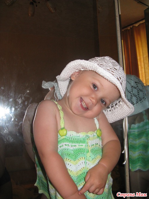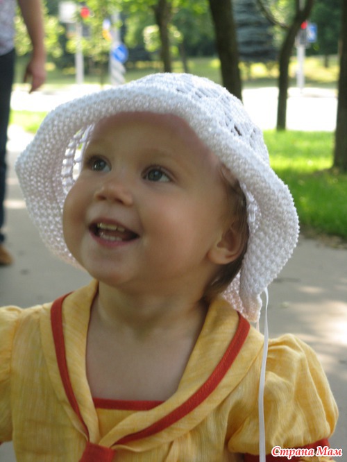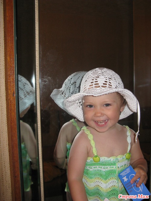 Великолепная панамка!!! Богдане очень нравится!!! Мама, ну растет у вас модница и кокетка!!! Поля хорошо держатся, вижу, что в них ничего не ввязано, правильно???