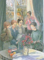 После ухода ребята составили план - кто когда заходит, кто какие предметы объясняет, кто будет гулять с Лёвой и водить его в школу.