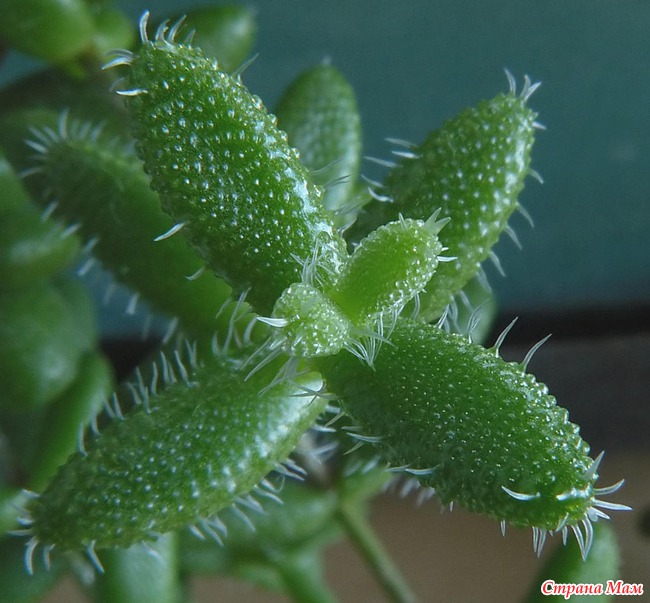 Меня поразило, что листики мясистые и на них как-будто капельки застыли