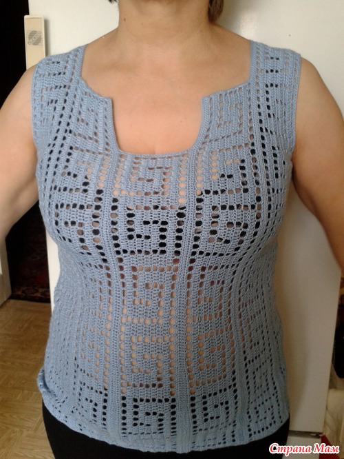 мне свою тунику удалось уже два раза выгулять с белыми льняными брючками, под нее одевала майку, а то из бюзика грудь выпрыгивает, когда нагнусь. Присоединяйся - вяжется быстро наудивление