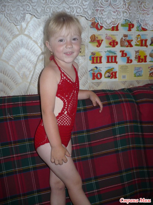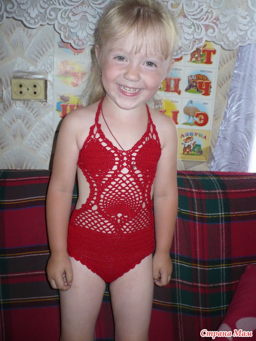 Связала первый купальник для дочки, ребенок в восторге, не хочет снимать!!!