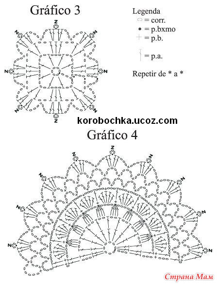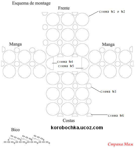 Свяжите 15 мотивов по схеме №1, следующие 15 мотивов по схеме №2; 20 мотивов по схеме №3; 14 мотивов по схеме №6; 1 мотив по схеме №4 и 1 мотив по схеме №5 (расположение мотивов указано в схеме сборки).