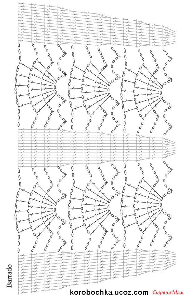 Низ блузки и манжеты вяжите по схеме "Barrado".