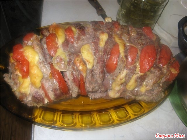 Мясо порезать кусками толщиной 1 см., но не дорезая до конца, посолить, поперчить.