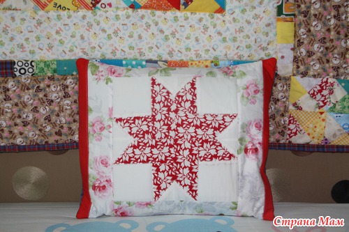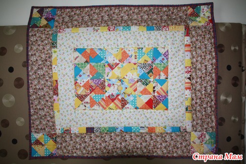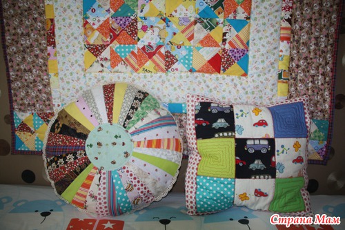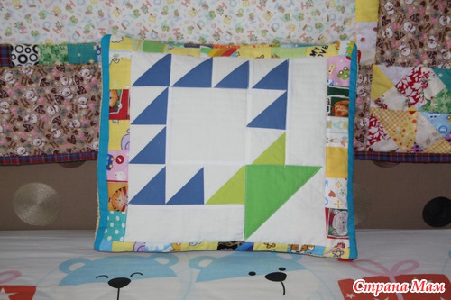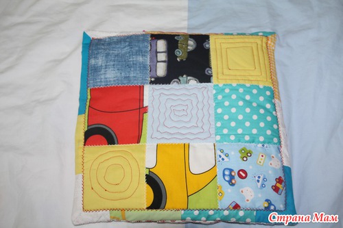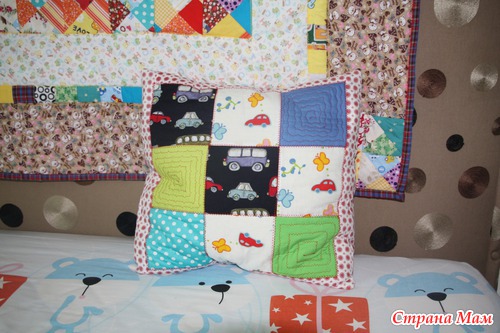 Шила сыну покрывало, и осталось ооочень много остатков ткани. Я их собрала и получилось еще одно детское покрывалко-одеялко, ну и к нему подушечку сшила. У меня племяш родился, вот хочу ему подарить.