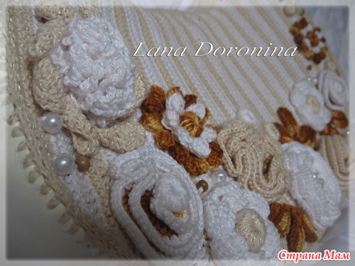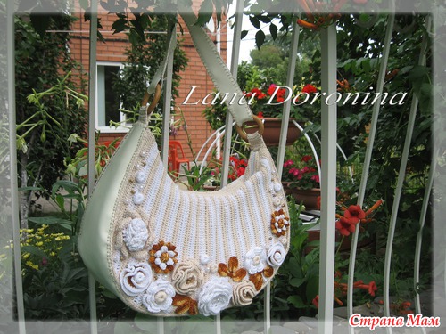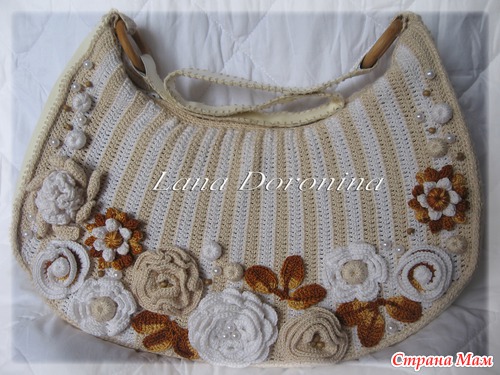 Подобную сумочку вяжут в он-лайне на осинке, а автор ее, если не ошибаюсь, португальская мастерица Lila. Только у автора она через чур цветочная.