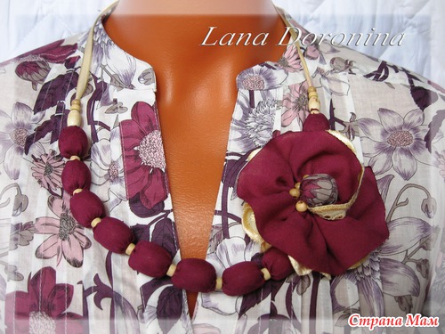 Ну и похвастаюсь здесь еще текстильными бусами "Винный цветок"