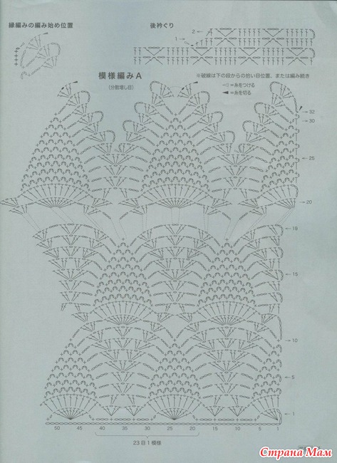 Ну а подол расклешила связав последние 3 ряда ананасов(с 34 ряда) с этой схемы.