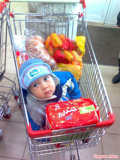 Моя дочка любила сок пить в магазине. Я её в тележку сажала и отдавала коробочку с соком. На кассе, разумеется, оплачивали (приходилось следить, чтобы коробочку случайно не выбросили).