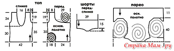 У моря, у синего моря... топ + шорты + парео спицы+крючок