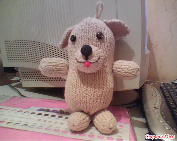 А собачка уже живет в Украине.Это тоже подарок на Д\Р.Вязалась она в больнице,где я лежала в ожогом.Попросила мужа принести ниток,а он прнес вот такие(ну что с мужика взять).Вот все собираюсь связать тигра(маленького на елочку),но пока руки не доходят.Надеюсь успею.
