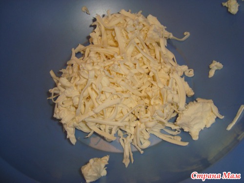 масло надо размягчить. так как я не стала ждать я его через крупную терку пропустила