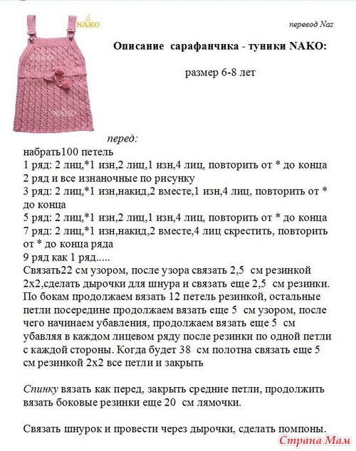 Девочки, тут мы будем вязать вот такой очаровательный сарафанчик для наших маленьких красавиц и принцесс! Описание: За перевод спасибо большое Naz с осинки. Девочки, начинаем работу? Читать полностью