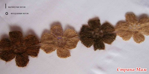 Вытянутые петли-это обычный сбн, вытянутый до нужной длины. Цветы, в принципе можно вязать любые, в том числе и на луме.