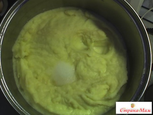 - пюре картофельное из 4-5 средних картофелин, долила 0,5 ст. молока и на больших оборотах взбила миксером, чтобы оставшиеся комочки разошлись... добавила сахару и1 ст. л. соли