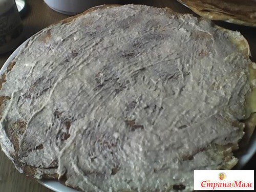 слои повторяем столько, сколько осталось блинов после забегающих на кухню родственничков