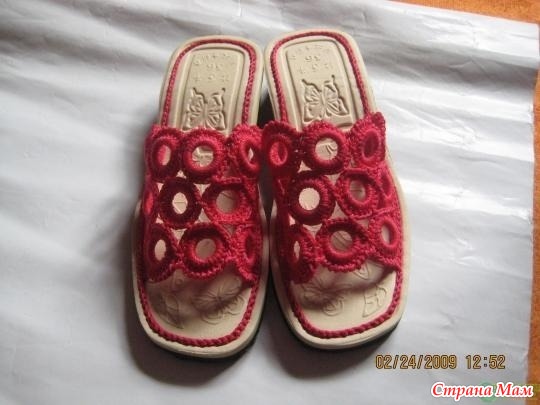 Подсмотрела идею на сайле Ли. ру дневник под ником helga1972, она предлагает обновить изорвавшийся верх старых шлёпок при помощи колец, которые в свою очередь обвязываем крычком и соединяем между собой и вот что получается. Читать полностью
