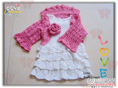 Все платье полностью на осинке, со схемами и фото много. И болеро там же подробно все и фото и схемы. Темка называется "китайские схемы" или что-то в этом роде. Вы у девочек там спросите, есть тема "ищу описание", вас быстро соорентируют. Я искала схему обвязки и это платье мне тоже понравилось, только мы выросли из него. Поэтому не захомячила.