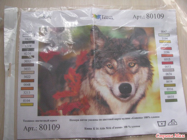 . Во первых там была моя слабость - канва с нанесенным рисунком волк