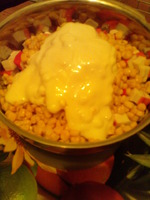 А вообще такой майонез и вкуснее магазинного и не содержит консервантов, ароматизаторов и модифицированного крахмала. В холодильнике может хранится около трех дней. Я думаю, "Оливье" вряд ли кто хранит дольше.