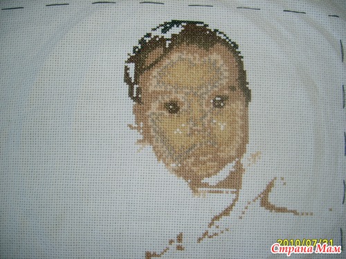 Вышила личико. Полная фигня получилась. Негритенок какой то.