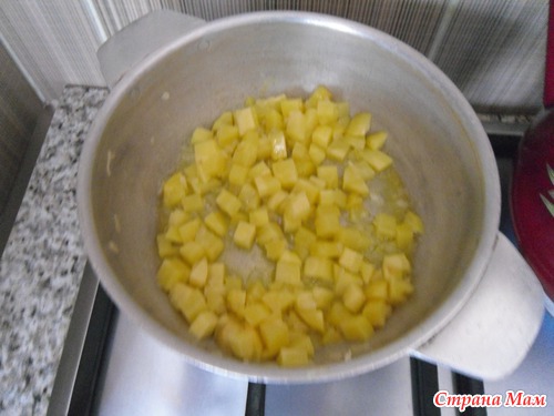 Добавить мелко нарезанный кубиками картофель