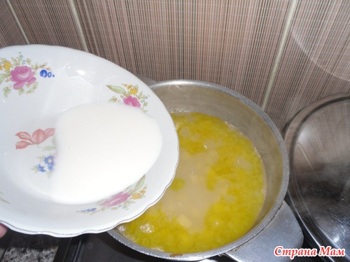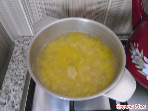 Эту смесь вылить в суп помешивая