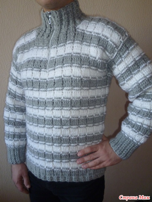 Как красиво! Моему мужу наверное бы тоже понравился такой свитерок, узор такой интересный получился! Спасибо за идею, что можно и крючком для мужчины свитер связать, а то я со спицами не очень дружу!!!