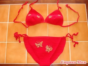 Девочки, хочу показать мой первый купальник. Как Вам? Это из Alize Diva и золотистый бисер. Бабочки из головы, схемы купальника нашла на СМ, спасибо большое идейным рукодельницам. Читать полностью