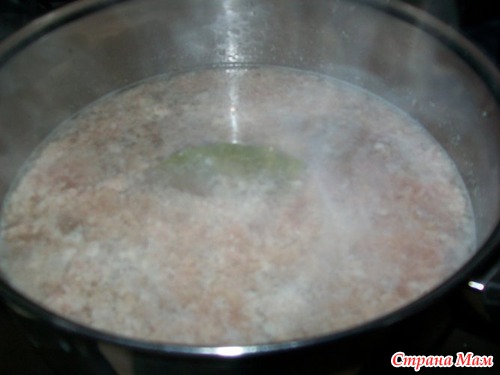 -берем фарш, кладем в кастрюлю с водой
