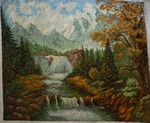 В тёплой воде, в расправленном виде разложу, подсушу, после натяну на станок. Вышивала полукрестом, её немного перекосило. А после с изнанки проглажу.