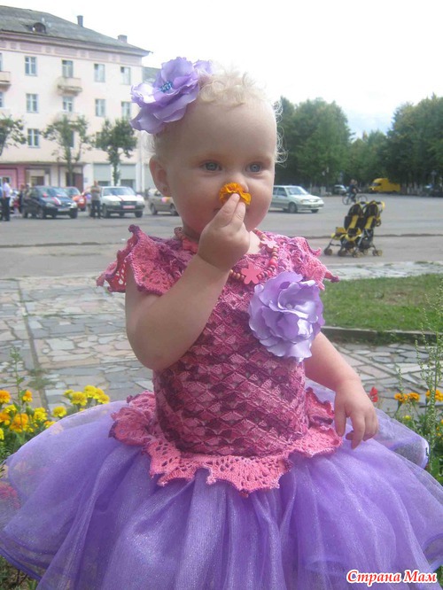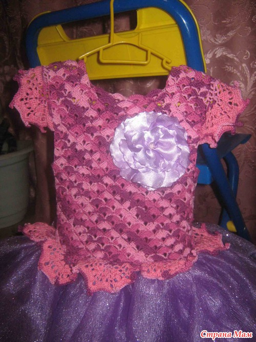 Комбинированное платье: верх вязаный ниточки СОСО РRINT ЦВЕТ 4664, юбочка - фатин по идее busenka82 https://www.stranamam.ru/post/1805055/ Только я её немножко доработала и обшила край бейкой) Урасила цветочком из креп сатина)