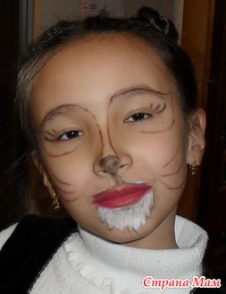 И ещё нарисовали мордочку. Было две елки и две разные мордочки ну вторая вроде бы больше похожа на кошку.
