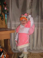 потом с папой смотрела новогодние плакаты, а после стали подтягиваться малыши ее возраста. Кого только не было! И тигры, и леопарды, и зайцы, и собачки... а девочка в костюме только она одна! Даша сразу со всеми подружилась, стала предлагать свою сумочку всем.) Было забавно смотреть на общение таких малышей)))
