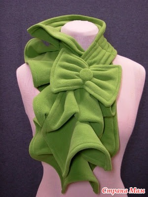 Делаем бантик. Пришиваем к шарфу, пришиваем кнопку и носим с удовольствием. Еще несколько идей того же шарфа