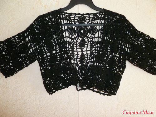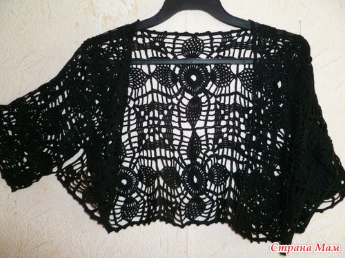 А спустя какое-то время срочно понадобилось мне для открытого летнего платья что-то на плечи. Достала свои недовязанные квадраты - и за полдня болерошка была готова!