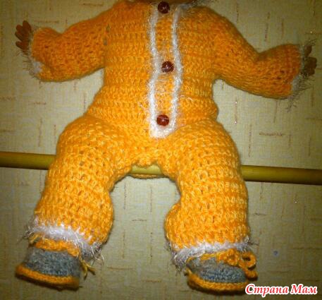 У меня, наоборот, вдохновение не просыпается. Уже два года не могу решиться сделать наряд для большого пупса. Маленькой кукле тоже комбинезон вязала, но на спицах. Не догадалась сфотографировать.