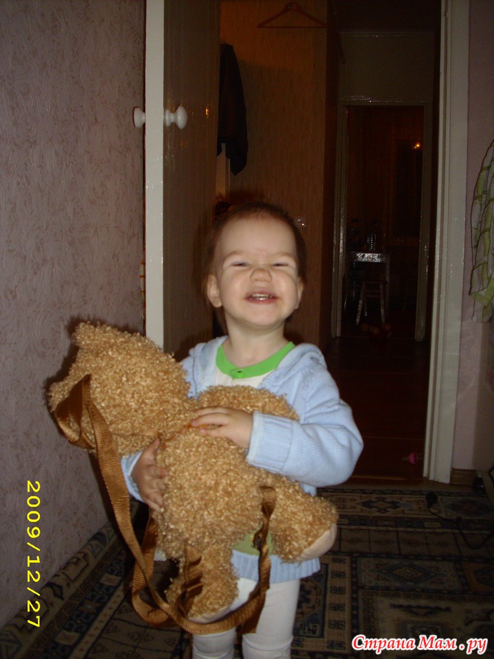 А ещё пока мы были на утреннике Дед мороз приходил к нам домой и принес такие рюкзачки с конфетами: