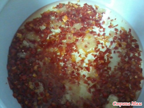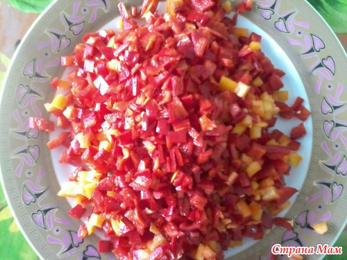 5 больших красных сладких перцев и 3 острых(можно варьировать количество острого, можно и побольше), мелко нарезать