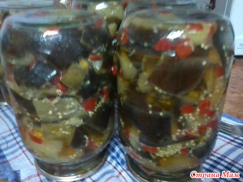 прокипятить с баклажанами 10 минут, влить 500 гр уксуса