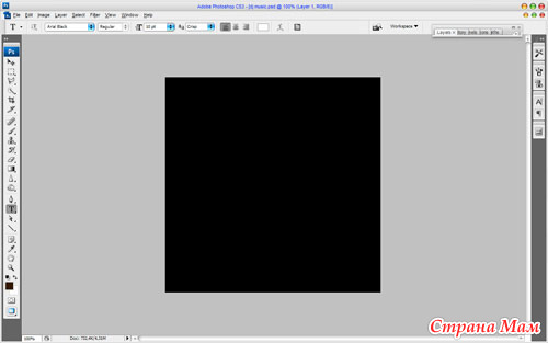 Создаем новый документ 500*500 пикселей, все настройки по умолчанию. Далее заливаем фон черным цветом.