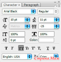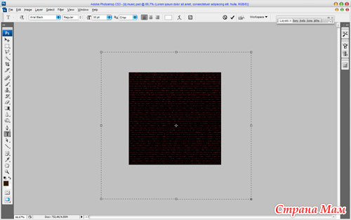 После этого выбираем инструмент «Горизонтальный Текст» и вставляем любой текст как на рисунке ниже, используя цвет текста # 431a1a.