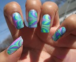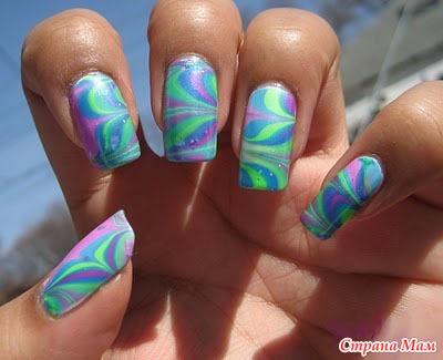 Теперь омакиваем ноготочки на рисунок, полученный на воде и рисунок мгновенно пристает к ноготочкам.