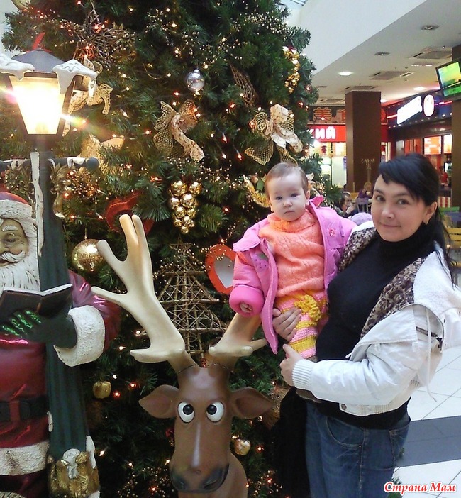 Кругом установлены елки, все наряжено, светится! Все фотографируются! Вот и мы с Анюткой решили сфоткаться!