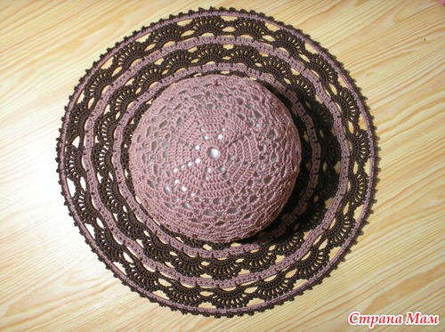 Поля шляпки от сюда - https://www.stranamam.ru/post/2538823/ только между рядами вееров я сделала вставку чтоб разбавить насыщенный темный цвет и расширить поля.