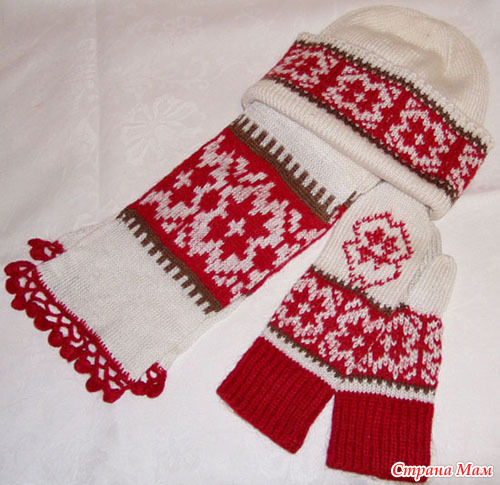 Купила красную пряжу и хочу связать сыну свитер с таким узором белым цветом, что-то типа снежинок ил звездочек, чтобы на первый раз не очень сложно было, ведь я еще только начинающая вязальщица!