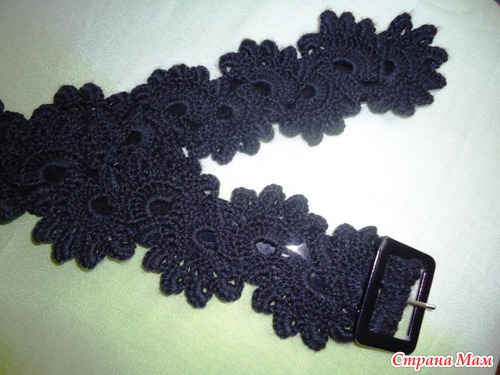 Связала два пояса контрастных цветов: черный из полушерстяной пряжи пехорка популярная и белый из пехорки ажурной (100 % хлопок). Ниточек уходит совсем немного Вот что получилось: